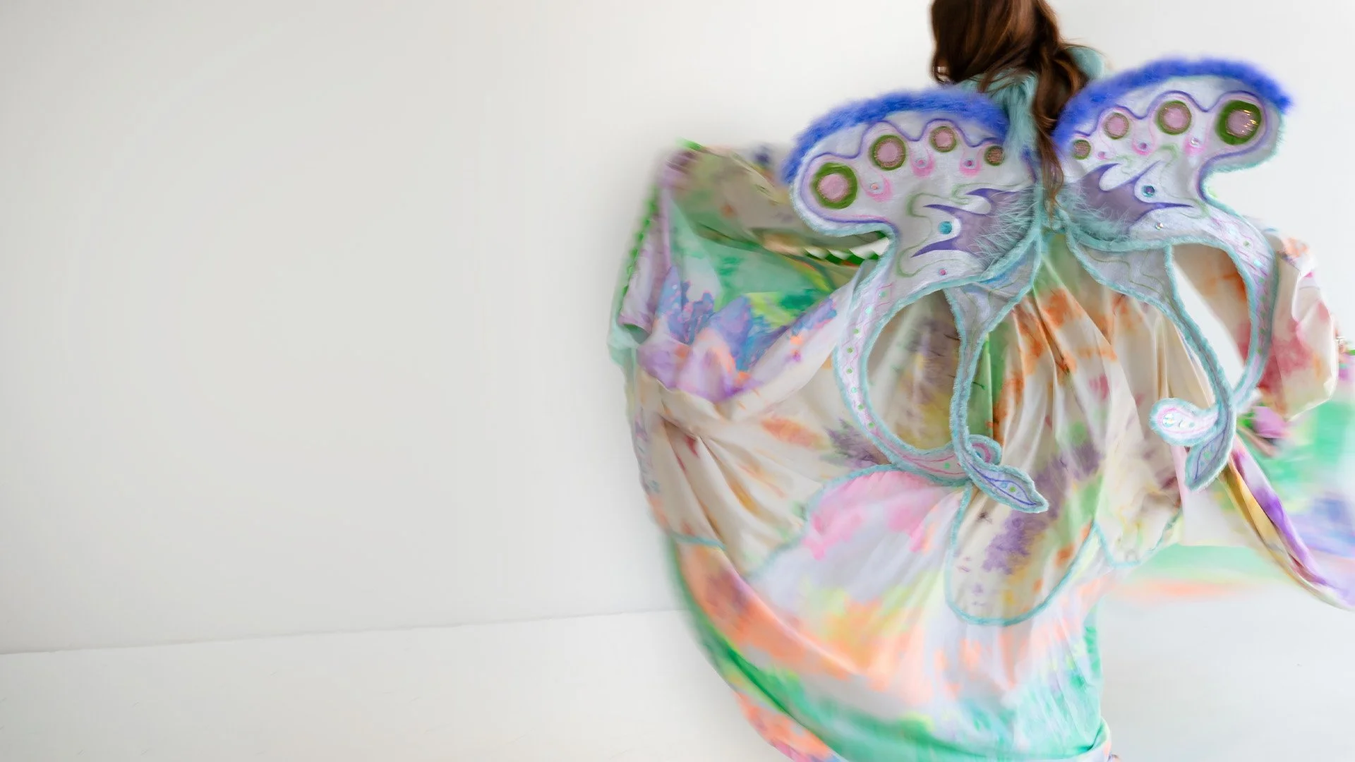 Stylistically blending fashion, myth and nature through sculptural costume works